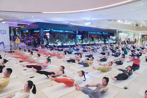 YUREN瑜伽与一禾瑜伽携手,在双子塔下的绿地缤纷城商场一楼大厅,为大家带来一场欢快愉悦的热汗体验。