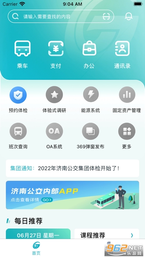 公交家最新版是专为公交集团员工打造的便捷服务平台,健康中心已上线体检预约功能,乘车、支付、办公等事务均可在此办理,功能全面覆盖员工各类需求,既能有效降低人力与时间成本,又便于员工利用碎片化时间学习和复习,提升学习效率。欢迎大家使用!
