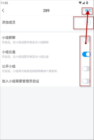 挑选你想要添加的小组成员,完成基础的小组设置后,点击确定就能创建小组了。