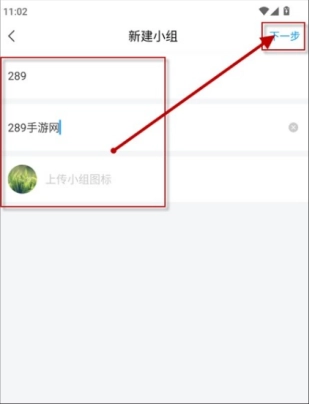 填写小组名称与简介,上传小组图标,接着点击下一步。