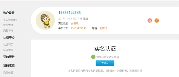 注册完成后登录账号,进入“我的”页面,选择“我的金币”或“我的活动”其中任意一个选项来完成认证流程。