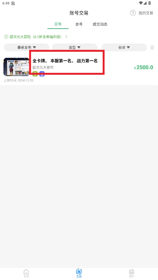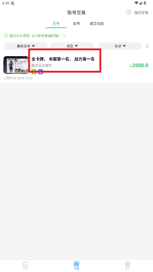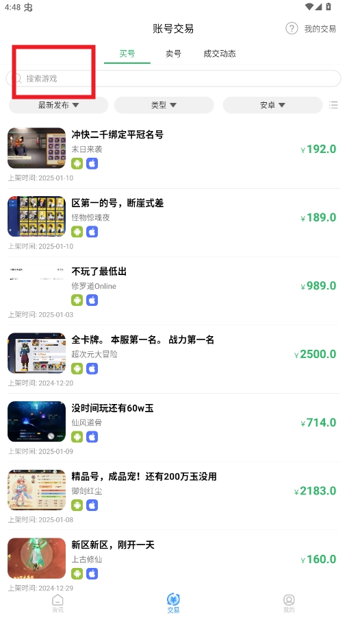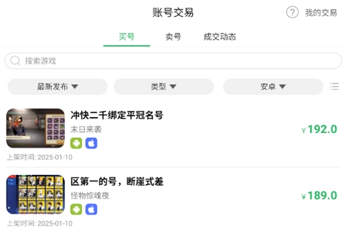 玩家能够便捷地一键上架自己的闲置账号,轻松完成账号信息填写与价格设定;买家则可在平台实时浏览各类