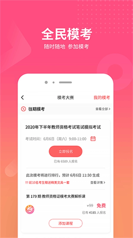 全民模考服务,助力用户不受时空限制参与模拟考试,及时检验自身学习成效。