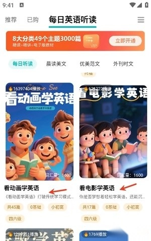 3、平台专门打造了影视学习专区,精心挑选优质英文动画与电影资源,助力用户于真实语境里提高英语听说能力。