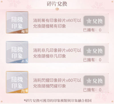 2. 不过实际情况是,印象融合并非一定能合成完整卡片,更多时候产出的是印象碎片。以稀有印象的融合为例: