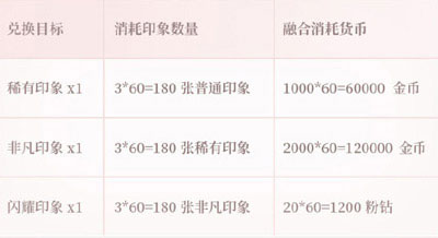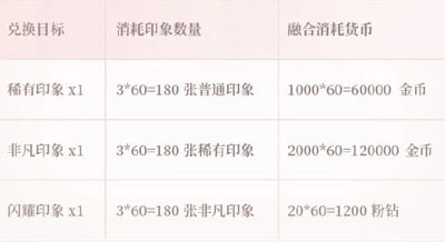 总结:非酋要得到1张随机非凡印象,得用掉180张稀有印象,再加上120万金币。(消耗不小,要不要融合就看你自己决定了)