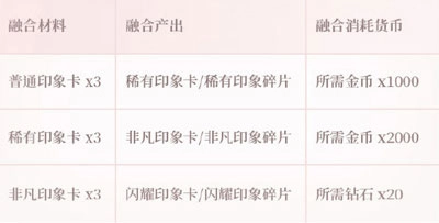 3张稀有印象进行融合,大概率得到1个非凡印象碎片,仅小概率直接获得非凡印象卡。