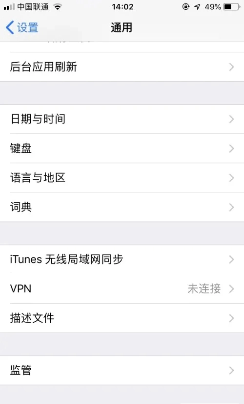 在通用界面下拉,找到VPN与设备管理