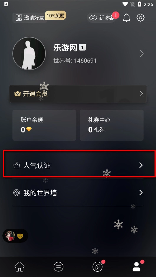 注册登录后,找到底部菜单栏的“我的”版块,然后在该版块中找到【人气认证】选项。