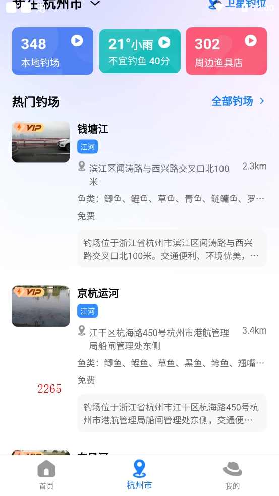 定位可以推荐周边的大量钓点