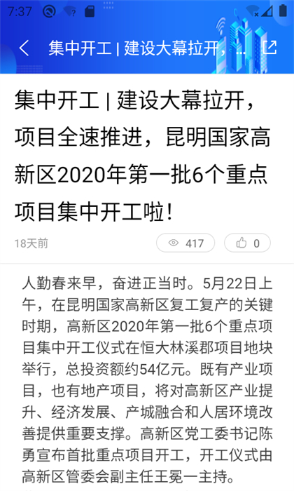 在首页能够浏览最新的新闻资讯,昆明高新区的本地资讯全都汇集于此。