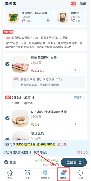 选择喜欢的食材进行购买;