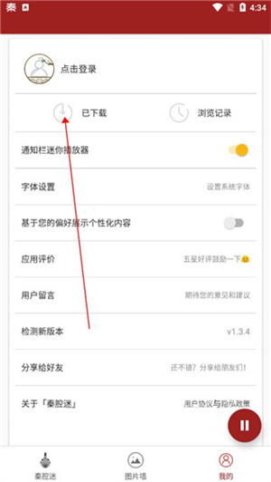 成为秦腔迷后,可点击进入,在首页选择【唱段】并点击进入。