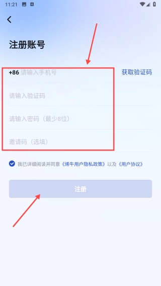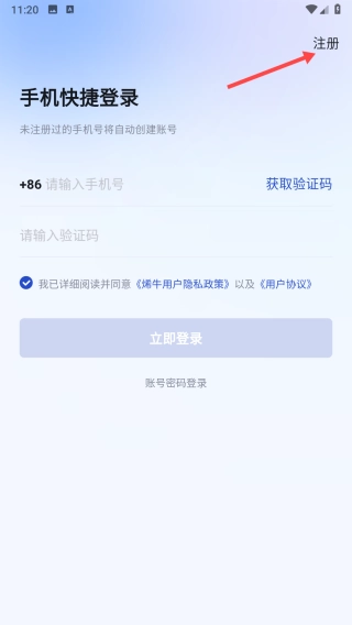 进入登录页面后,点击右上角的【注册】按钮,即可进入下一个界面。