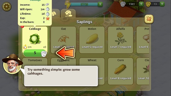 使用金币能够解锁农作物,对应的农作物成长周期与经验值,点击即可查看详细数据。