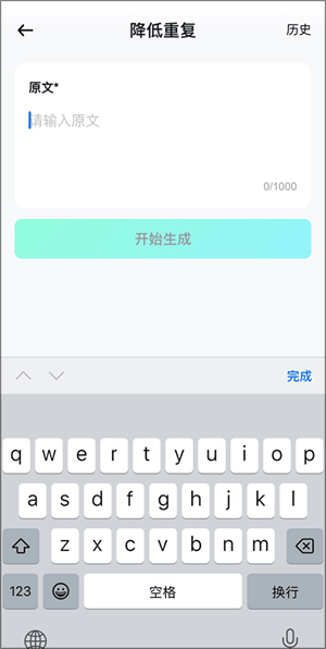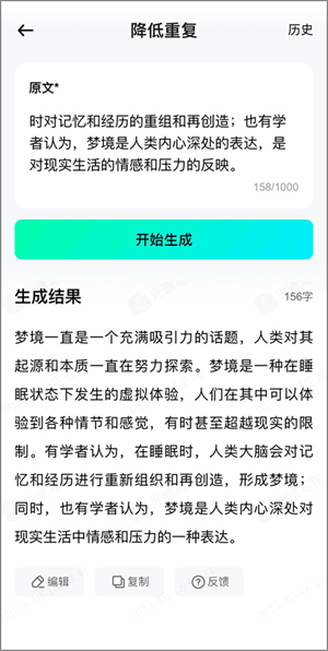 粘贴想要降重的字段或文章,点击“开始生成”。