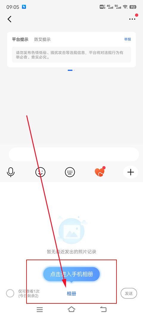 在聊天信息栏中,点击发送图片