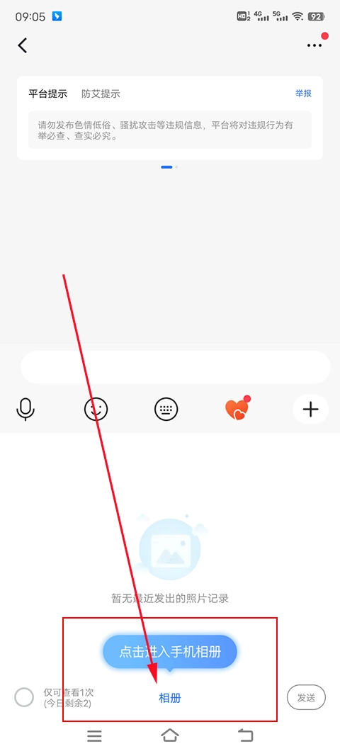 在内容页编辑好希望发布的内容后,点击打开下图所示位置的“你在哪里”