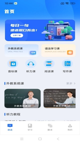 首页推送的学习资料超丰富,随时开启外语自学。