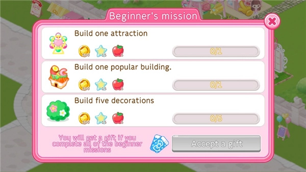 和凯蒂猫一起打造一座超棒的游乐园吧,点击下一步就能继续啦