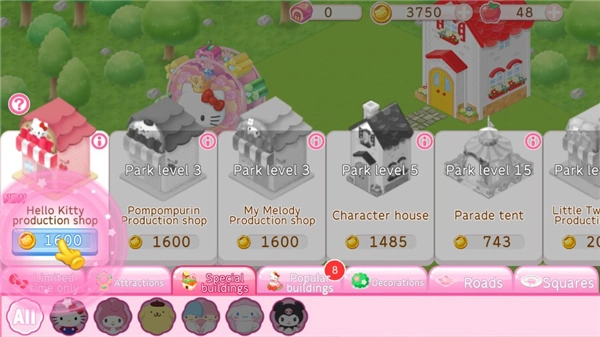 游戏里收录了不少三丽鸥的人气角色,像凯蒂猫、我的旋律、蓬蓬布林、琪琪和拉拉、黑桃与肉桂都在其中!而且还有更多热门角色会在后续陆续推出呢!