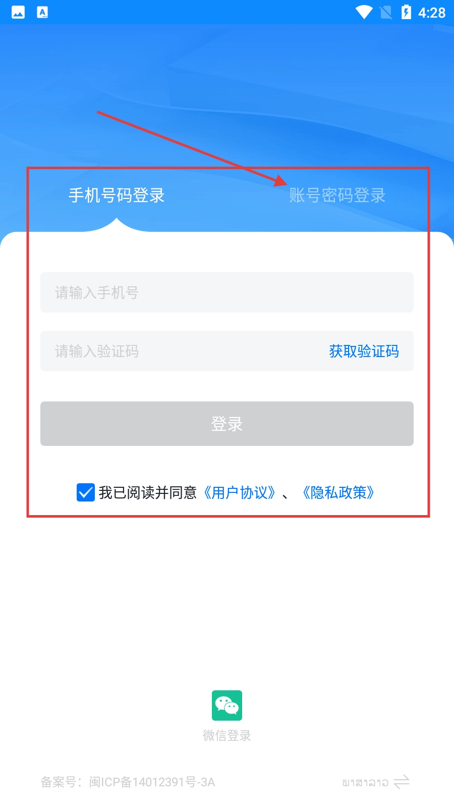 您可以选择【手机号码登录】或者【账号密码登录】这两种方式,在输入相应的信息并且勾选同意用户协议与隐私政策之后,就能完成登录操作。