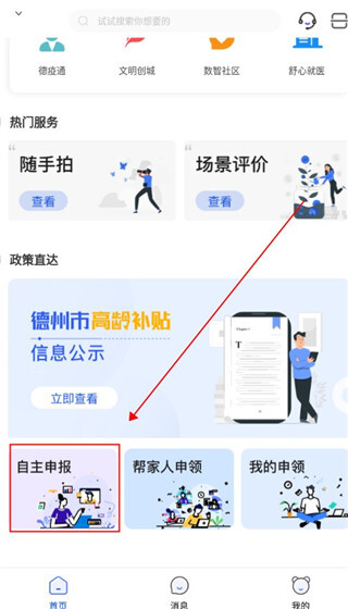 1、打开软件进行登录注册进入首页,如果需要报备的话直接往下滑,找到自主报备点击进去根据要求填写相关信息即可