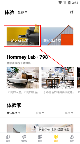 进入【体验】页面,点击【+加入体验家】