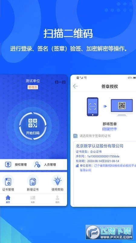 一部手机能够申请多张移动数字证书,这些证书之间可实现无缝兼容,通过扫描二维码,就能完成登录、签名(签章)、验签以及加密解密等各类操作。