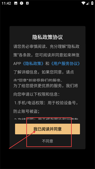 启动【如来神涨】应用后,会出现【隐私政策协议】的弹窗提示,点击弹窗中的【我已阅读并同意】按钮,即可进入软件的主界面。