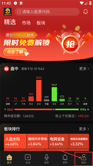 在主界面点击底部的【我的】入口,就能进入登录页面,启动账号登录流程。
