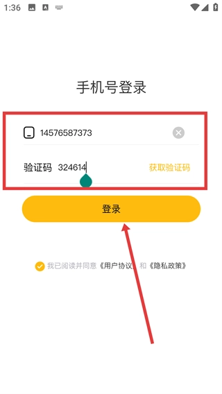 在手机号登录页面,输入已有的手机号,获取并填写验证码,勾选同意协议的选项后点击“登录”按钮,即可完成账号登录流程。