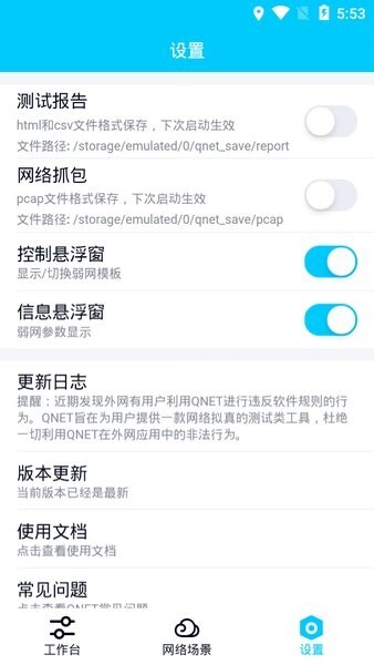 参数可在本地进行修改,QNET具备预设与自定义弱网模板的功能,同时支持悬浮窗,在测试过程中能够一键切换弱网配置。
