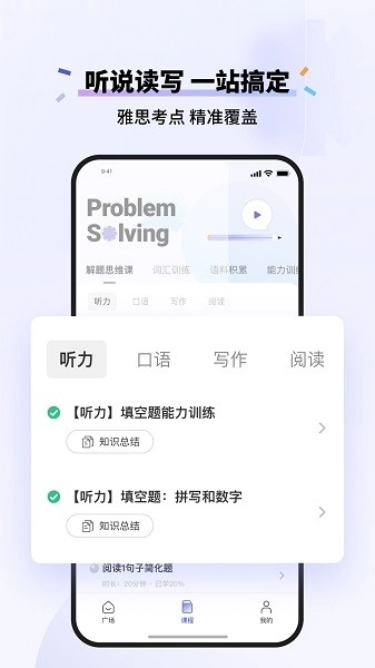 提供涵盖听、说、读、写的学习内容,方便随时练习各类听力与口语,获取多样的阅读和写作素材。