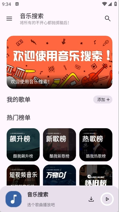 进入软件首页后,便能看到丰富的音乐资源,包括飙升榜、新歌榜和热歌榜等。