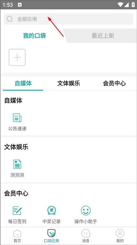 用户打开爱口袋App并登录进入首页,首页设有操作小助手,点击其中的口袋应用即可。