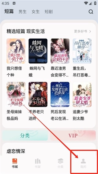 1. 第一步,打开汽水小说,在软件主界面点击右下角的“我的”页面。