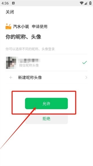 4、点击微信登录按钮后,页面会跳转到账号授权页面,在此页面需点击允许软件使用头像、昵称等信息。
