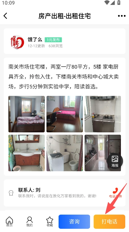该平台设有互动联系功能,用户进入房产详情页面后,可通过点击“咨询”按钮或直接拨打联系电话,与对应的服务主体或房源负责人建立即时沟通。
