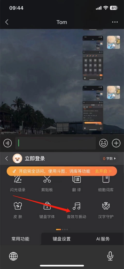 然后进入到界面点击音效与振动
