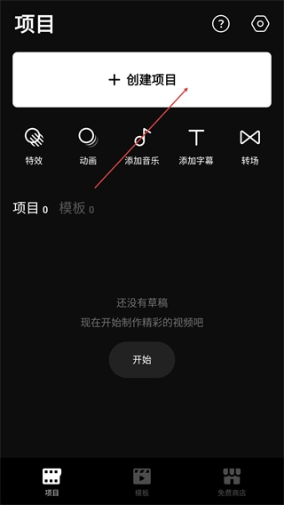 在“项目”页面点击【+创建项目】按钮,即可进入素材选择界面。