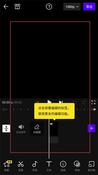 进入视频编辑界面后,你可以借助底部的功能栏(包含剪辑、声音、文本等选项)来对素材开展编辑工作。
