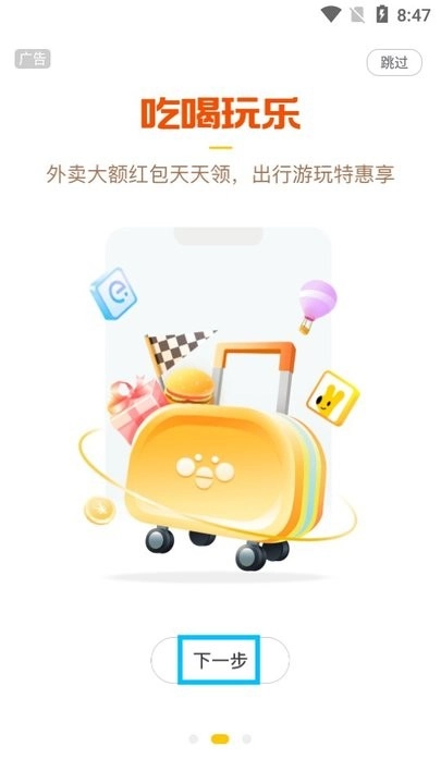 ·日常吃喝玩乐,每天都能领取大额外卖红包,出行游玩还能享受特惠福利,点击【下一步】;