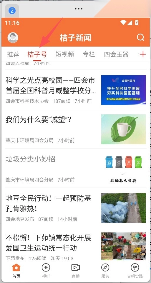 打开《桔子新闻》,点击桔子号。