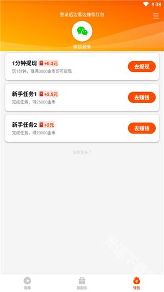 满0.3元就能提现,通过看视频、签到和完成任务可以赚取金币,每天都能把钱提现到微信红包里。