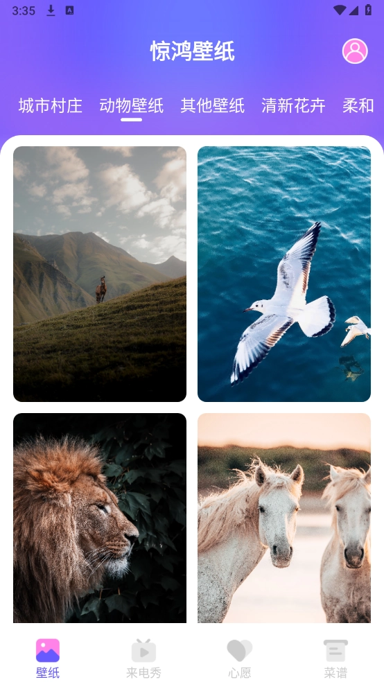 惊鸿壁纸为用户带来了便捷的手机桌面美化体验。在这里,用户能获取丰富多样的壁纸资源,以及趣味十足的来电秀功能,助力用户打造专属的个性化手机风格。所有资源都有着清晰的分类,方便用户快速找到同类型的多款壁纸。