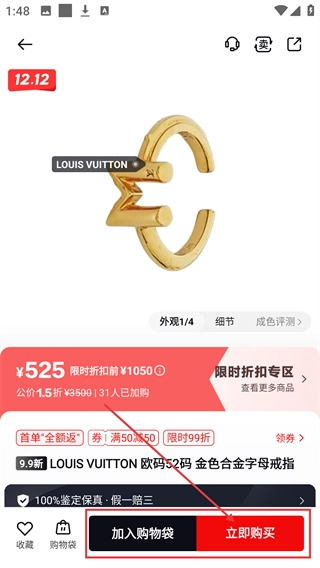 选中目标商品进入详情页后,点击【立即购买】按钮,即可进入下单流程。