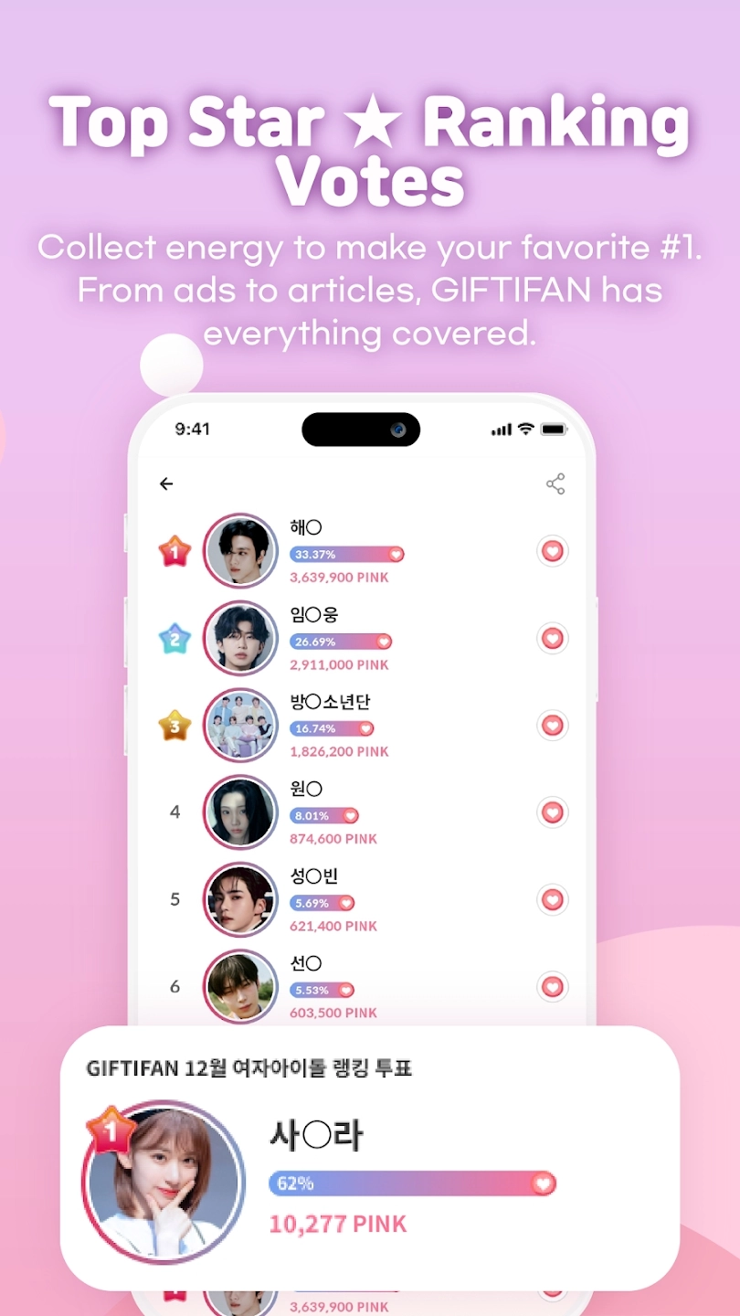 GIFTIFAN是一款专为粉丝打造的手机追星应用,能让我们的追星旅程变得更有趣、更有意义!在这里,大家可以通过完成各类趣味任务积累能量值,这些能量值可直接用于参与线上投票活动。GIFTIFAN还设有丰富多元的粉丝社群,无论你喜欢哪位偶像,都能找到同好伙伴。要是积极参与社区互动与任务挑战,甚至有机会赢取偶像签名照、周边商品等福利,让追星之路充满惊喜!