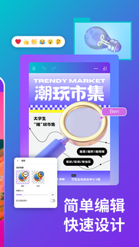 编辑器:配备多样的设计工具,支持用户对文本、形状、图片等各类设计元素进行自主编辑操作。
