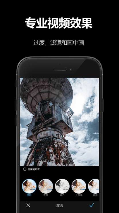 专业视频效果:过度、滤镜和画中画。